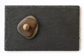 Deze prachtige wierookhouder is gevormd uit twee unieke rivierstenen uit de Waal en een leisteen plateau. Plaats een wierookkegel bovenop de rivierstenen en steek die aan. Er stroomt een witte mistwolk langs de stenen naar beneden die een mooi contrast vormt met de donkere leisteen. Geniet van dit dynamische beeld en de subtiele geur.