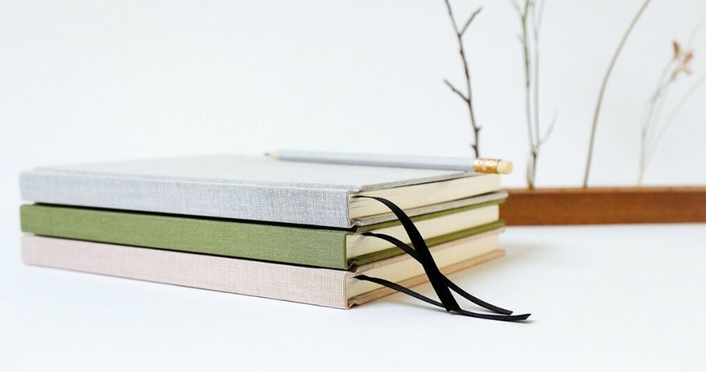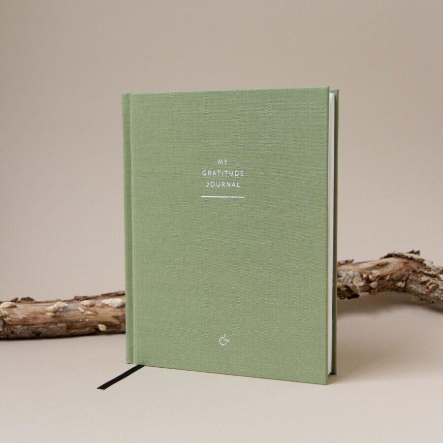 My Gratitude Journal is onderdeel van onze collectie Note To Live By. Het notebook heeft een luxe, mosgroene linnen omslag (hardcover) met zilveren zeefdruk, en een leeslint. Aan de binnenzijde vind je creatieve kaders die je uitnodigen om te schrijven, tekenen, kalligraferen of handletteren. Of plak er een kaart, foto of beeld uit een tijdschrift in.